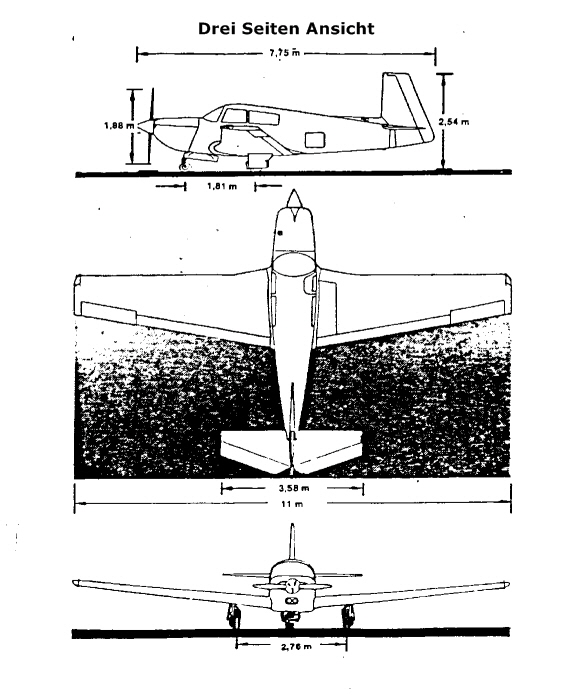 Dieser Abschnitt beschreibt das Flugzeug mit seinen allgemeinen Merkmalen, den Dimensionen, Maßen und den grundlegenden Systemen wie Aufbau, Zelle, Motor, Propeller und Fahrwerk. Desweiteren sind Angaben über Betriebsstoffe und Zubehör aufgeführt.