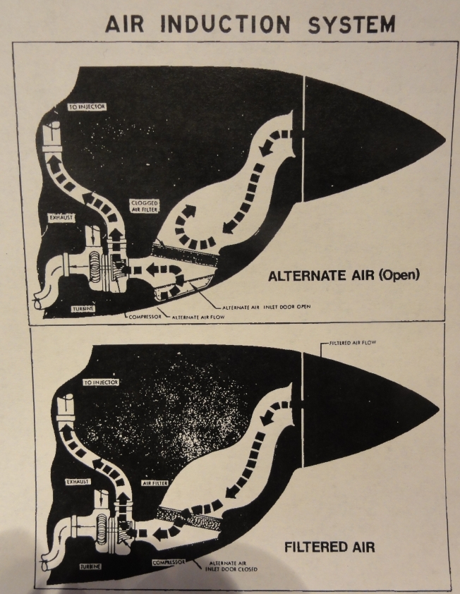 Im Kompressor des Turboladers wird diese Luft komprimiert, um damit die Füllung der Zylinder zu verbessern. Da dadurch auch der Druck steigt, steigt auch die Temperatur. Vom Kompressor gelangt die Luft über die Laderohre zu den Zylindereinläufen. Hier wird über die Düsen Kraftstoff zugesetzt, so dass ein brennbares Gemisch entsteht, was beim Öffnen des Einlassventils in den Motor gelangt. Ein automatisches Ventil öffnet, wenn der Druck im Ansaugsystem zu hoch wird, um Beschädigungen des Motors zu verhindern. Da bei geöffneter Notversorgung die Luft aus dem Motorraum angesaugt wird, und diese warm ist, beugt sie auch Vereisungen vor. Das Luftfilter ist ein Papierfilter.